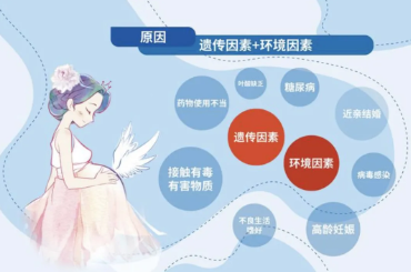 出生缺陷是指嬰兒出生前發(fā)生的身體結(jié)構(gòu)、功能或代謝異常。出生缺陷可由染色體畸變、基因突變等遺傳因素或環(huán)境因素引起,也可由這兩種因素交互作用或其他不明原因所致,通常包括先天畸形、染色體異常、遺傳代謝性疾病、功能異常,如盲、聾和智力障礙等。